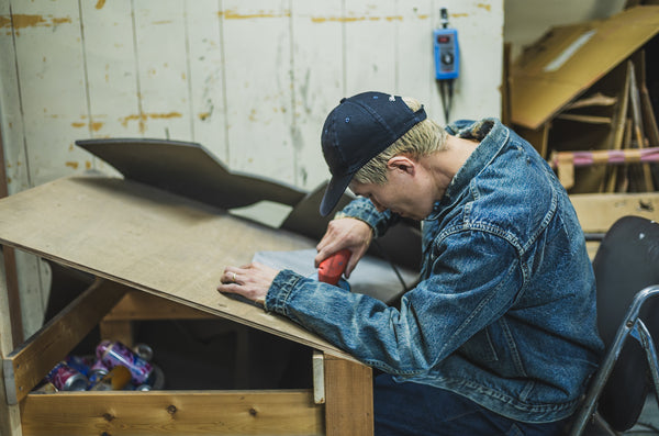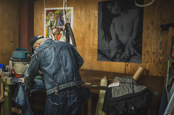 Speaking of the stitching, TCB strives to accurately reproduce each vintage piece. This is why ironing is necessary to achieve the same distortion, and different sewing machines are used depending on the model to achieve the same stitching. Of course, since it's done by hand, it's impossible to achieve an exact replica, but we wanted the process to retain the TCB signature.