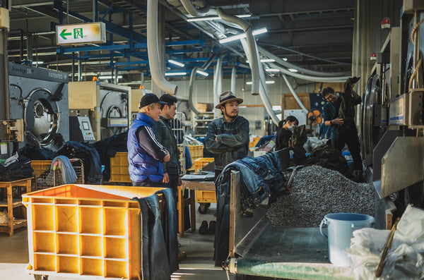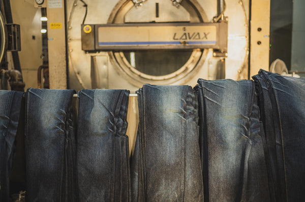 Many of you may have heard of the stone-washing process, which involves adding pumice to a washing pot to create an overall look. The weight of jeans changes with size. As the weight of the jeans in the kettle changes, the amount of pumice stone added affects the fading. This time, we calculated the weight of each size and had the processing carefully match the weight of the jeans and the ratio of pumice stone used during washing.