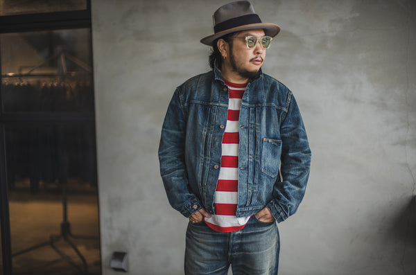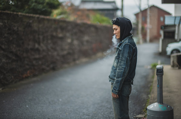 This time, we approached RYOTA of Bito Co., Ltd., a young up-and-coming designer we hope will lead the next generation. His workshop is always decorated with vintage pieces with various beards, and he draws inspiration for the beards and distressing he creates from these pieces as he works on each pair.