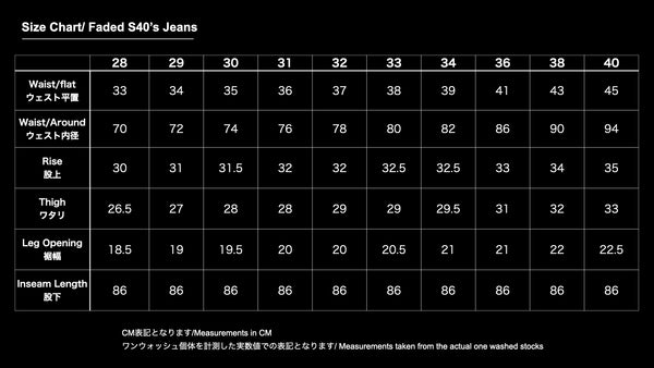 - Because this product is made from raw fabric and faded, the sizing is smaller. We recommend going up one to two sizes compared to regular S40s.