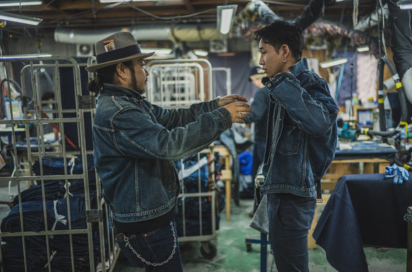 Speaking of the stitching, TCB strives to accurately reproduce each vintage piece. This is why ironing is necessary to achieve the same distortion, and different sewing machines are used depending on the model to achieve the same stitching. Of course, since it's done by hand, it's impossible to achieve an exact replica, but we wanted the process to retain the TCB signature.