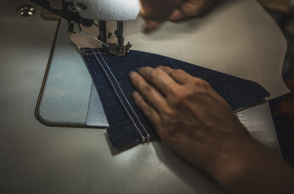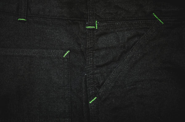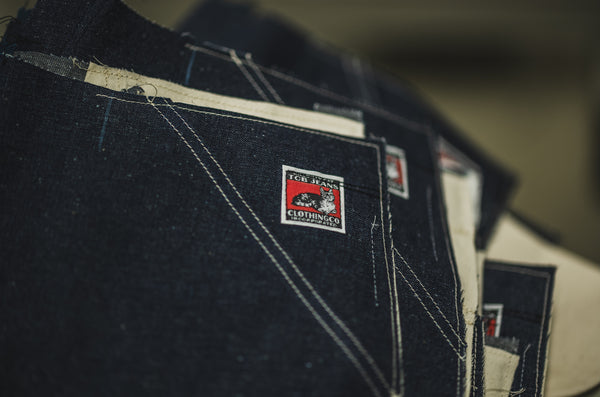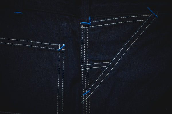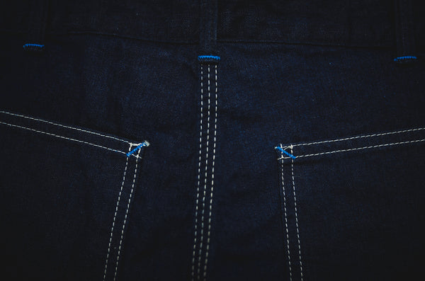 10.8oz Indigo Rope dyed/ 2-by-1 weaving construction like vintage painter pants.