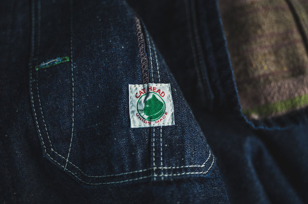 There are dot buttons on each side of the chest, so there are a total of three types of buttons on one garment, so the development costs alone were high, but I think we have created a very adorable tag and buttons. Another thing that I found attractive was the green bar tacks and buttonholes. There are many vintage jackets with colorful bar tacks, and at TCB we have had fun using colors that remind us of vintage style and colors that seem familiar but are not really in the clothes of today. However, the only jackets I can remember with colorful buttonholes are Duck Head and Oshkosh. Of course, the green looks vivid at first, but the green fades as you continue to wear it, which may be one of the joys of this jacket.